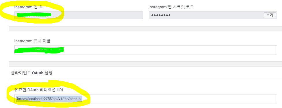 {app_id}는 instagram 앱ID, {redirect-uri}에는 아까 작성했던 유효한 OAuth 리디렉션 URI에 적었던 주소를 입력해주세요. 위 이미지를 참고하세요